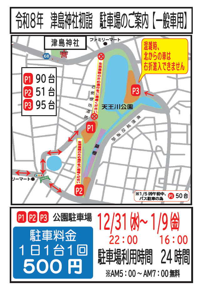 令和8年 津島神社初詣に伴う駐車場のご案内 2025 12/05 公園からのお知らせ 2025.12.05 公園からのお知らせ よかったらシェアしてね! URLをコピーしました! URLをコピーしました! 11/28(金) 天王川公園ライトアップ 点灯式開催